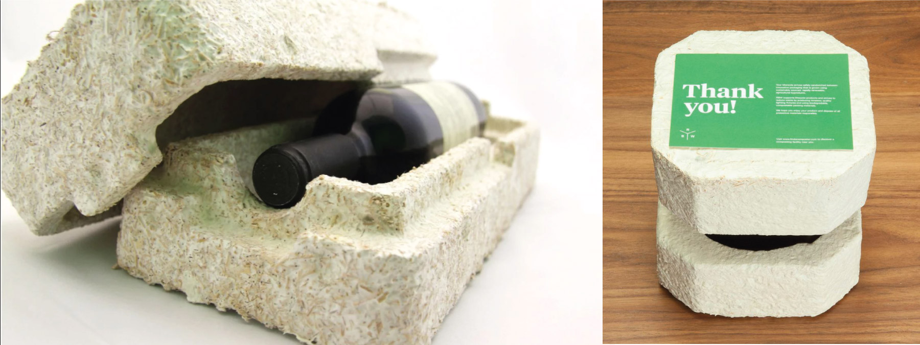 Another fascinating example is the recent trend towards mushroom fiber. It’s compostable, durable and sustainable to produce. We’ve been seeing it pop up in packaging, shipping material and even furniture.