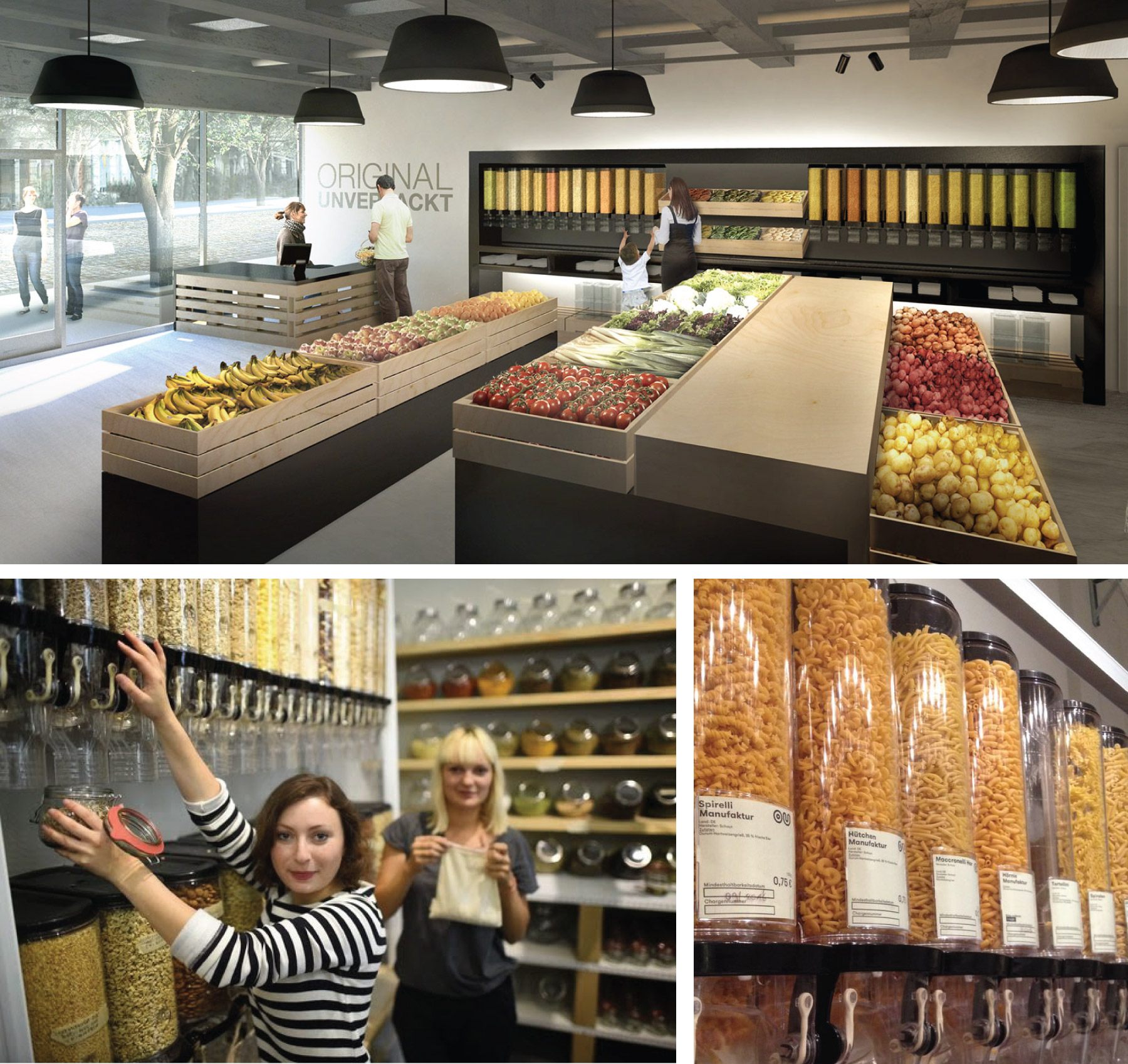 Several grocery stores are taking this concept to the extreme. A Berlin-based grocery store called Unpacked aims to have zero packaging in the store. All items are presented loose or in bulk. And customers are expected to bring their own vessels or rent ones from the grocery store to transport the items home. I really love this idea—even though it threatens my job security.