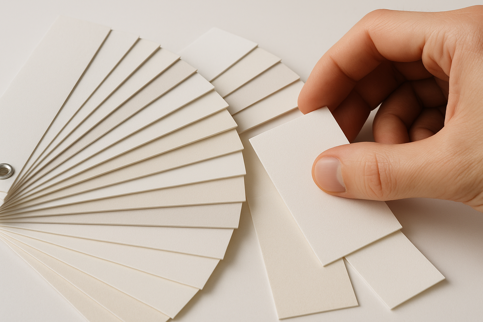 - Ink saturation: coated stocks make colours pop; uncoated absorb more ink
