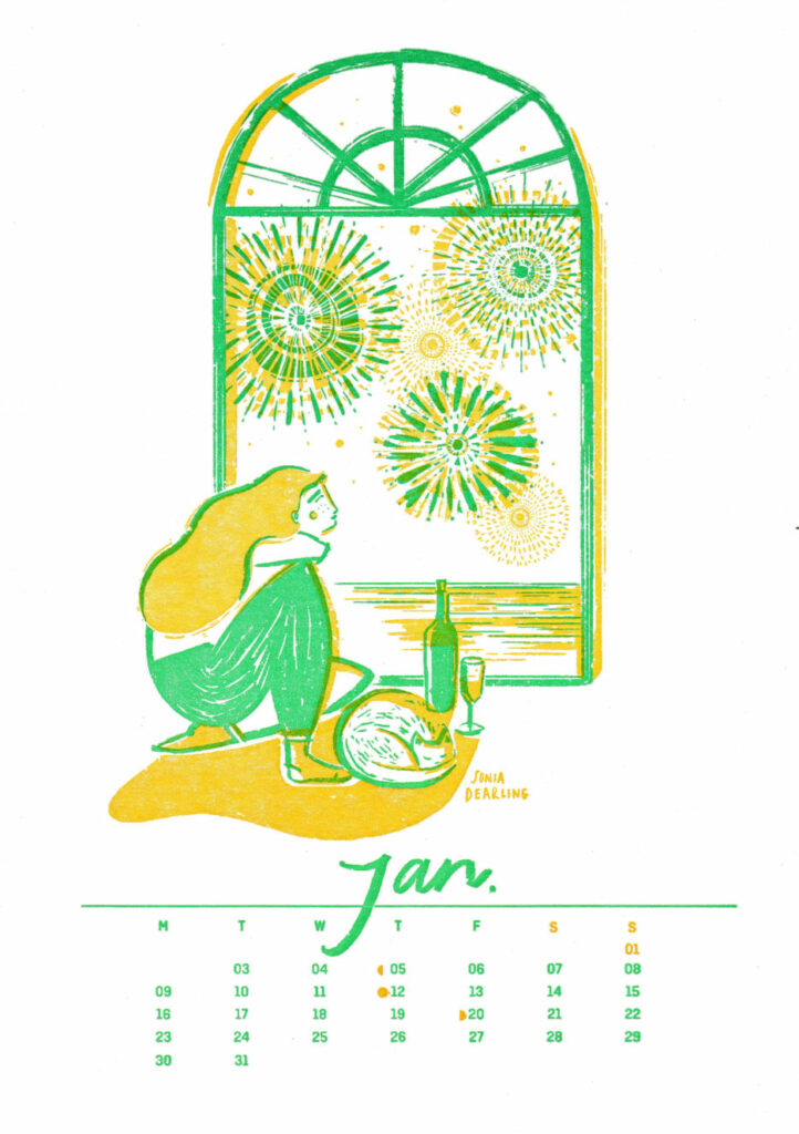 Imile WepenerSOURCE: http://10and5.com/2017/01/16/13-local-artists-illustrate-a-beautiful-calendar-for-essie-letterpress-2017-almanac/