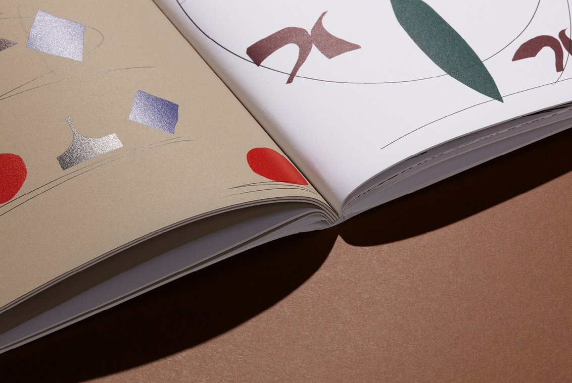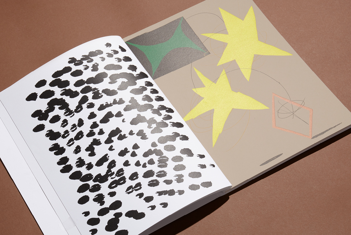 “The linguistic meaning isn’t the visceral or aesthetic feeling that you get from it,” Bruce adds. “There’s a page that has a big black ‘X’ on the spread. It’s a page that sticks out and feels almost quite aggressive and quite bold and stark compared to the other pages. And actually, when you use the key to read it you find that it’s not. It’s a nice thing having the shapes having a double entendre, literally meaning two things, because we’re basically giving you two different ways of reading it.”